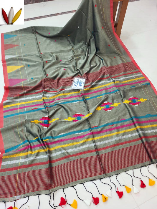 Tissue linen jamdani saree