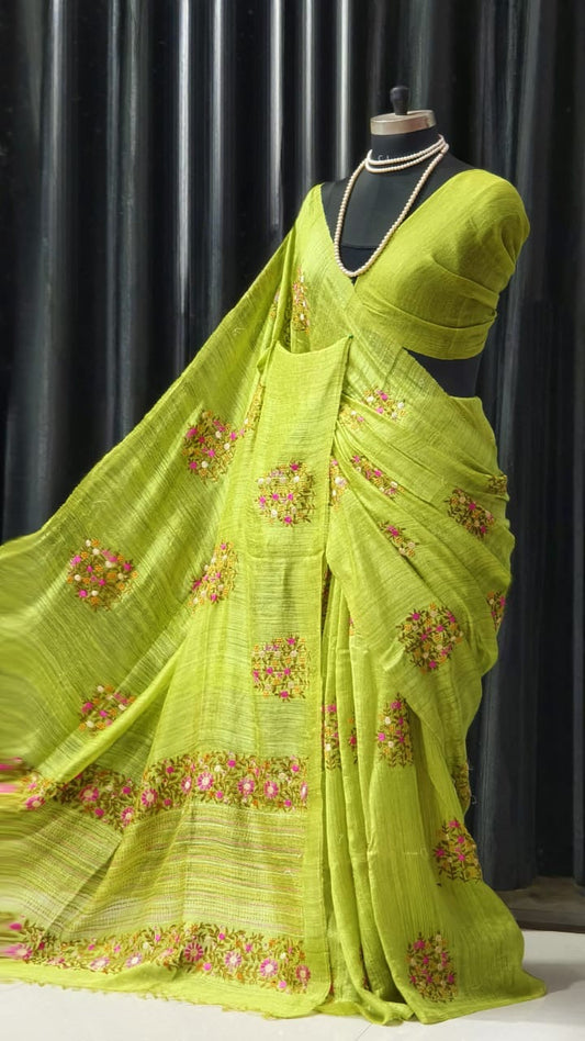 Putul's Fashion Silk Mark Certified Tussar Sarees with Floral Embroidery