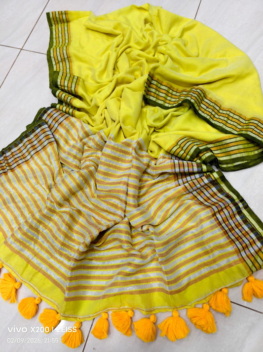 Yellow and Green Jamdani Saree from Putul's Fashion in Gachi Tussar