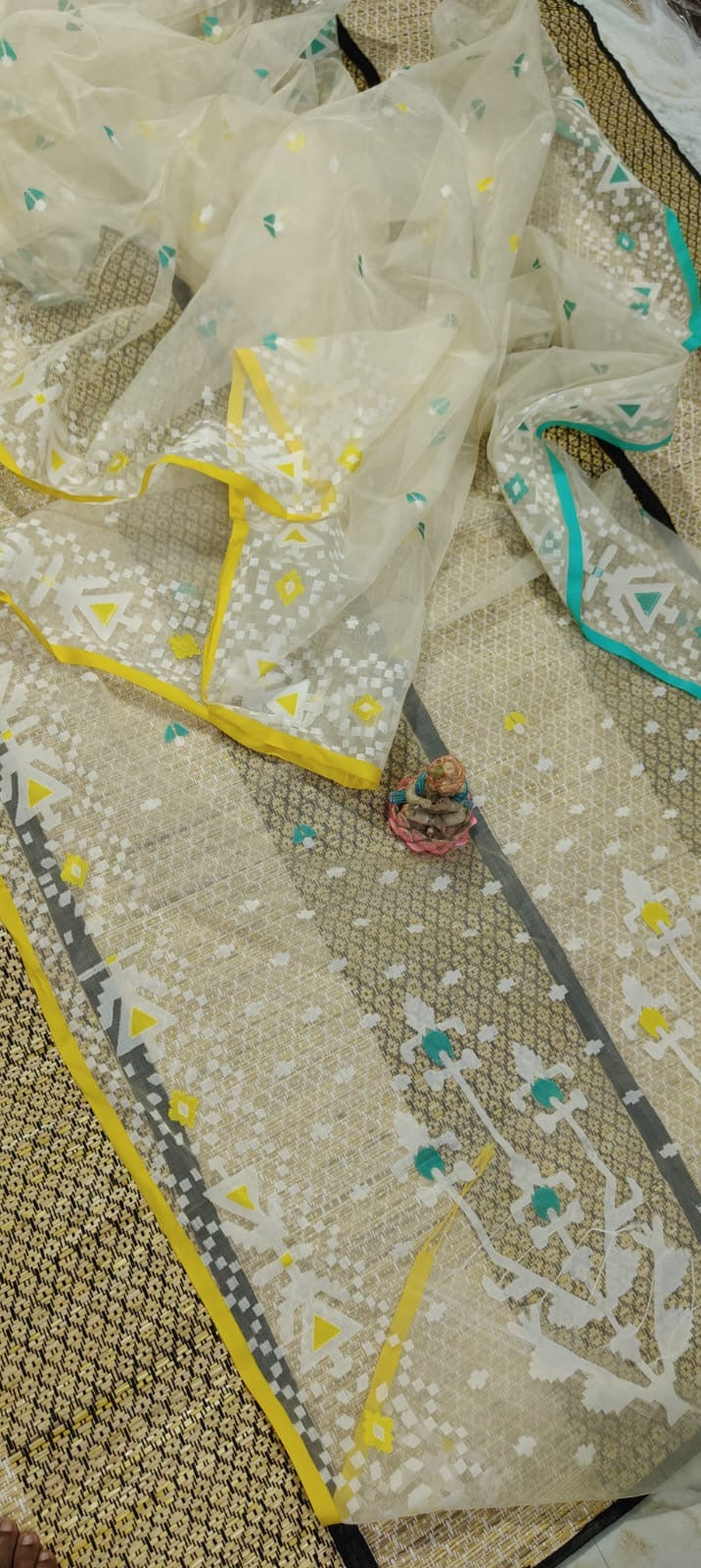 Handwoven ganga yamuna resham Muslin jamdani saree